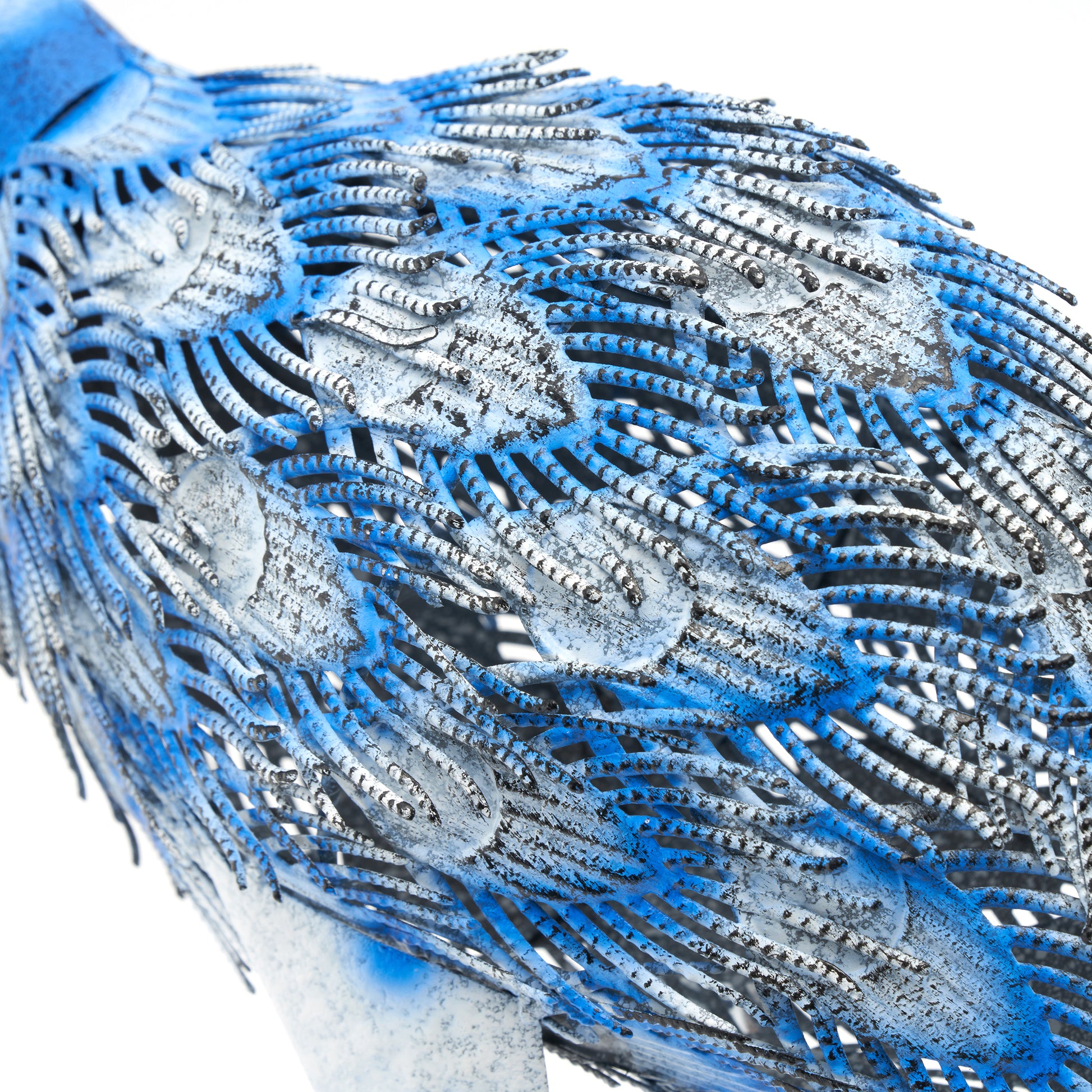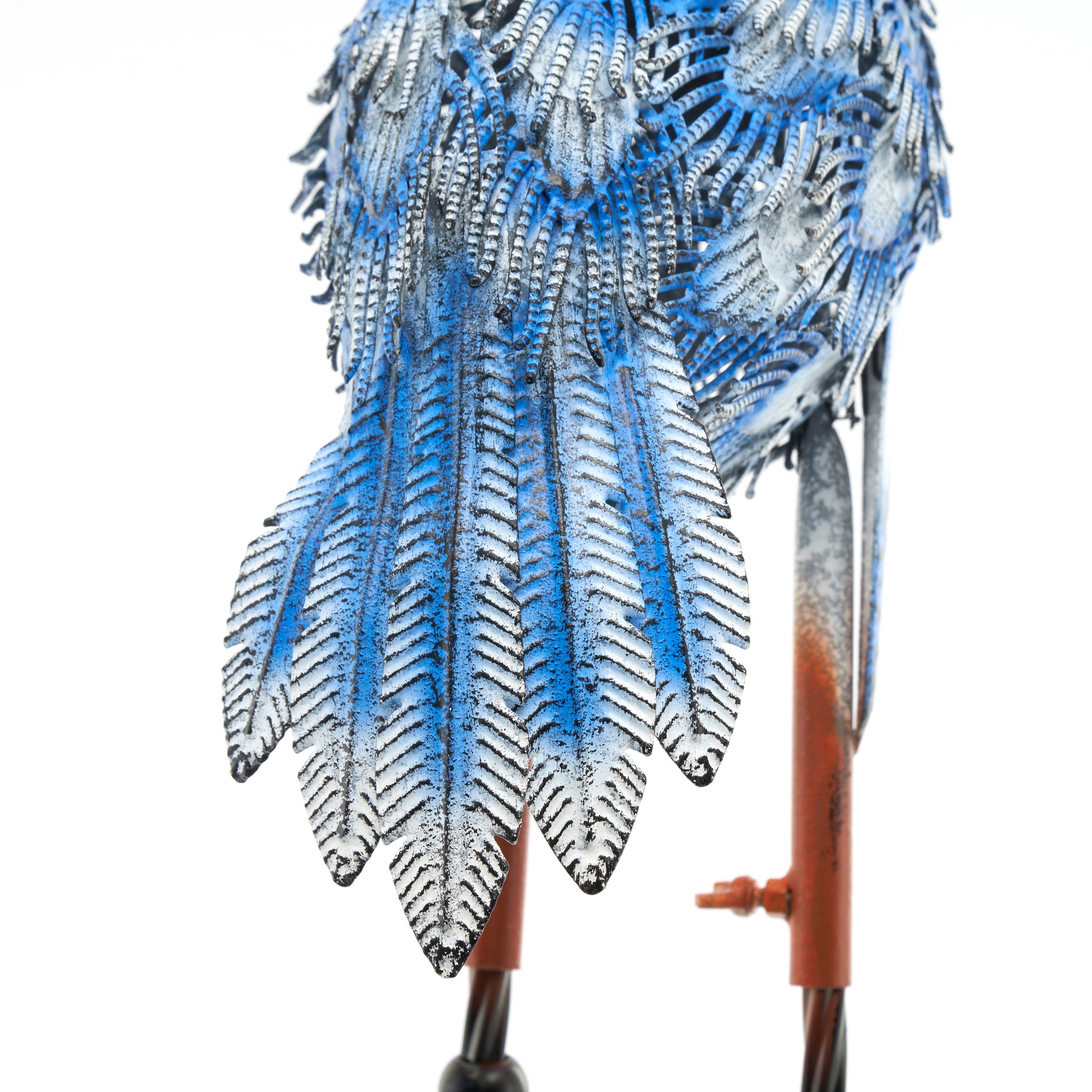 - Exquisite metalwork sculpture in sapphire and alabaster plumage