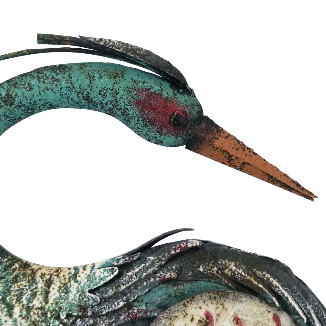 Bring a touch of tranquility to your space with Caius the Heron. Known throughout the world for their grace and calm, the heron is a symbol of studied stillness, carefully taking in their surrounds and intelligently deciding if it’s safe to stay, or time to take flight. This stunning sculpture is a wonderful homage to the grand heron, perfectly posed in a contemplative stance, and finished in a rainbow-hued patina.