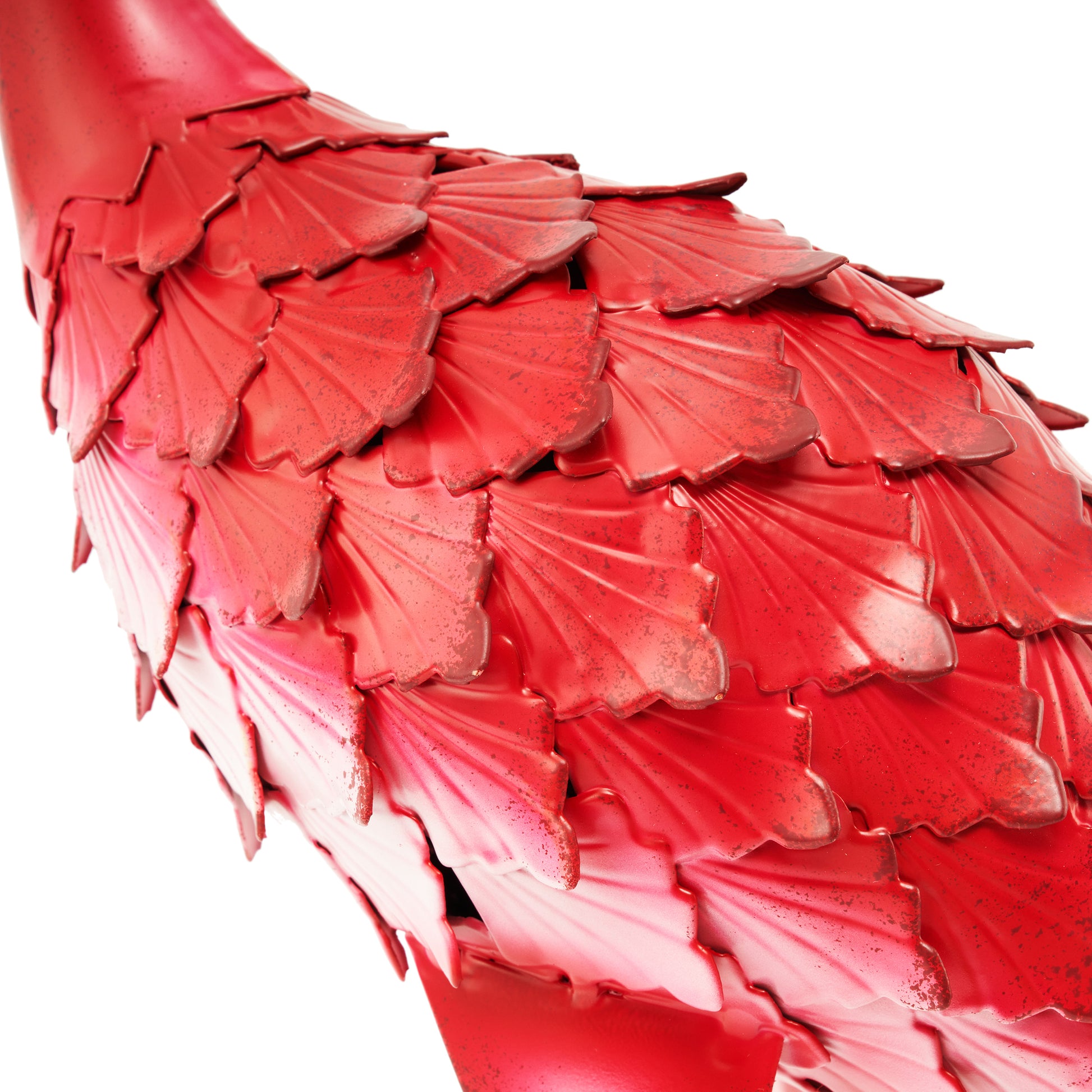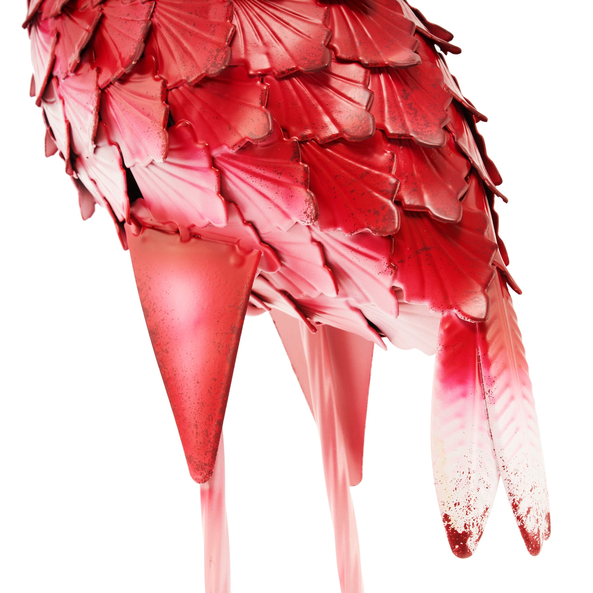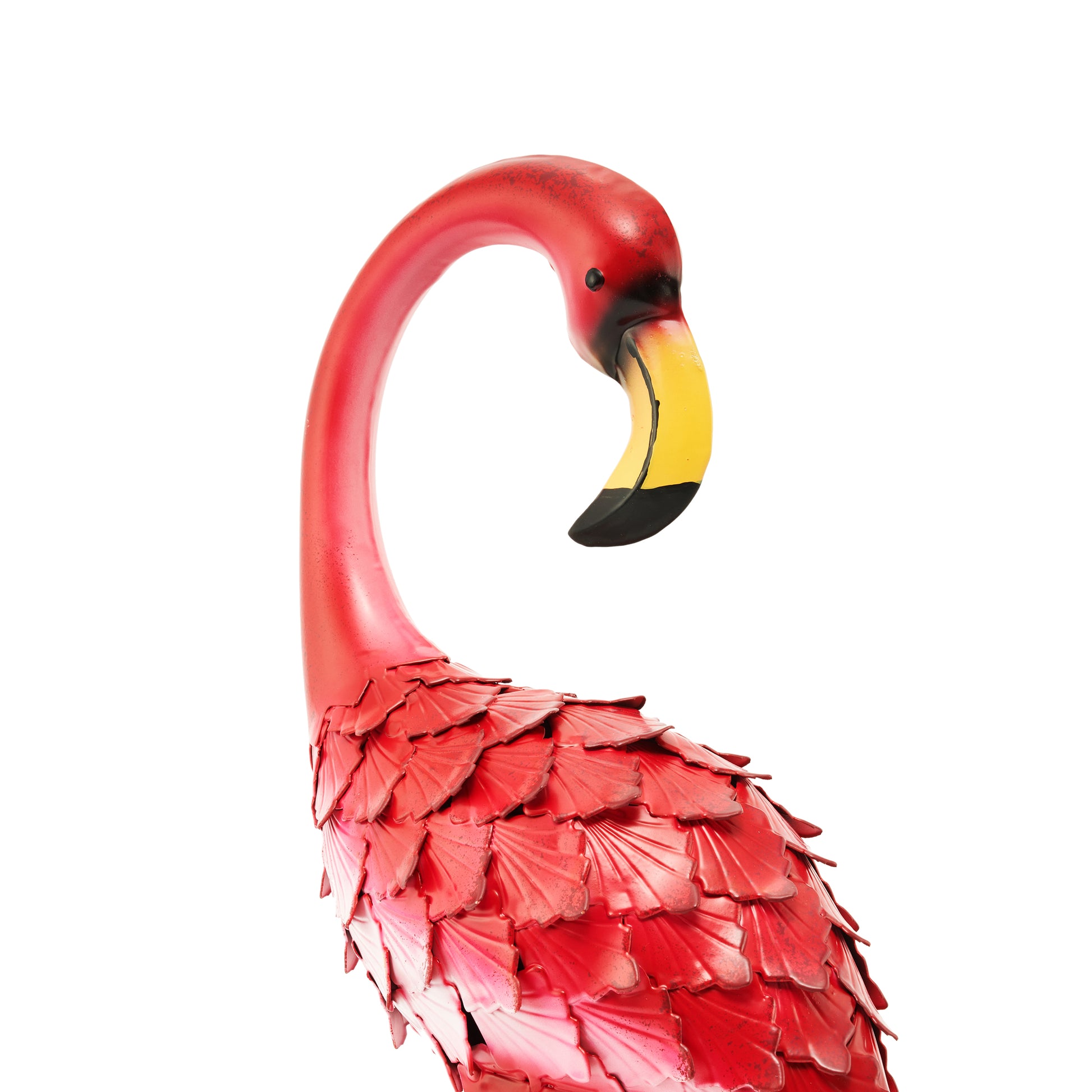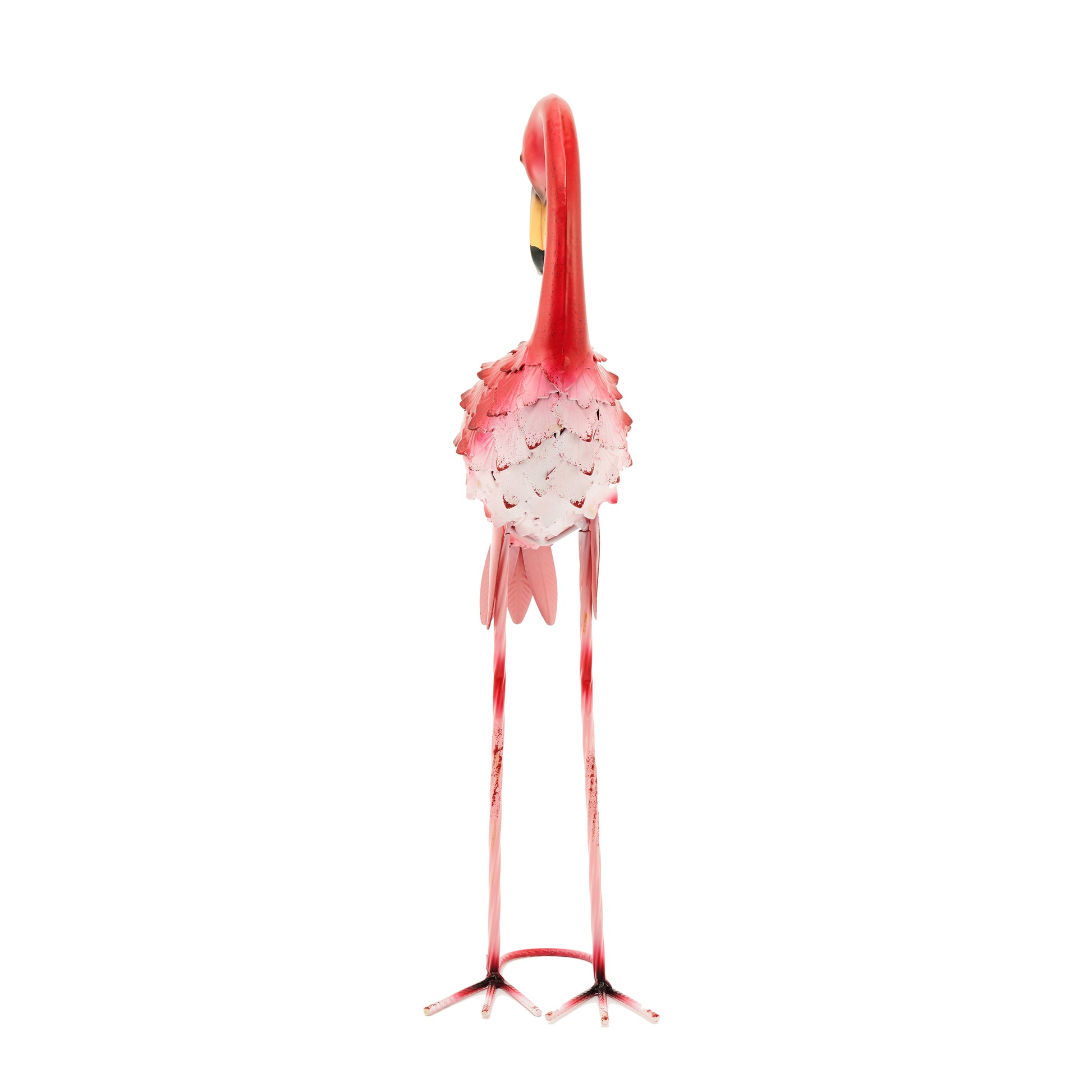 Felicia, a name derived from the Latin word for happy, is a majestic flamingo. Symbols of beauty, flamingoes remind us to honor the beauty in nature and in every exquisite detail of life. The vivid pink color splendidly contrasts the foliage, accentuating landscaping and garden design while bringing a point of interest and personalization to your outdoor space. This eye catching decorative accent features the flamingo's signature brightly colored feathers, evoking passionate emotions. A creative way to add a welcoming touch and bold colours, the body of each flamingo features rolled metal pieces with lace-like cut-outs, providing a one-of-a-kind stylish texture to the piece. The solid iron construction ensures these statues offer long-term use.